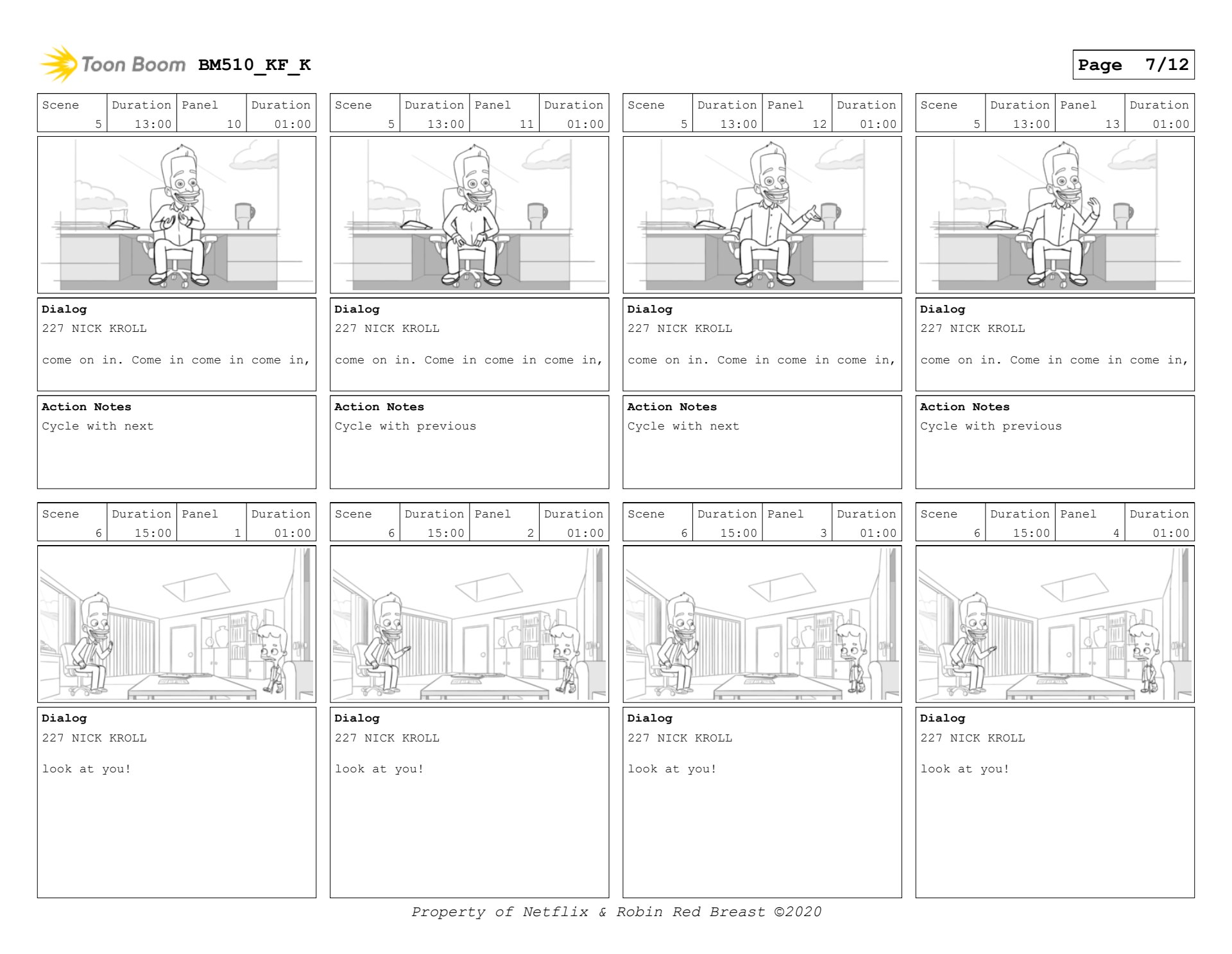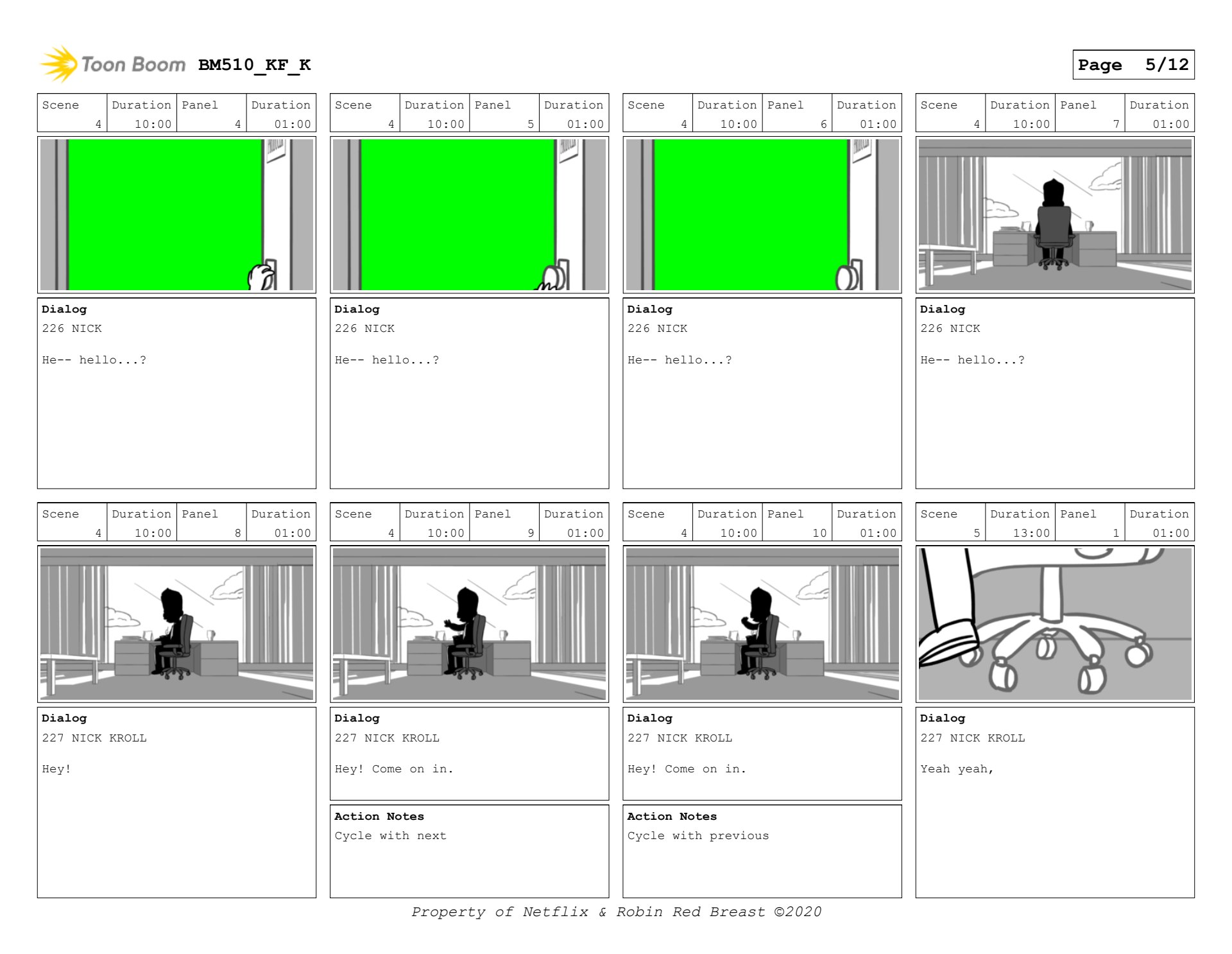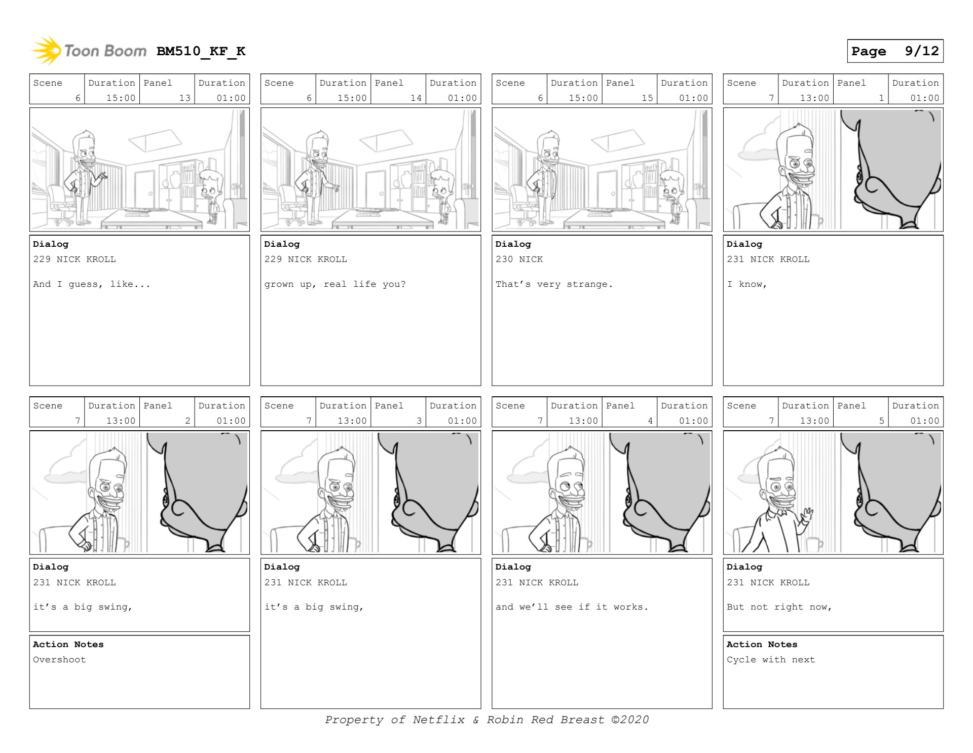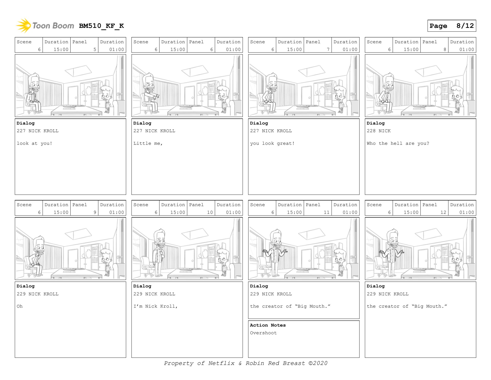 Big Mouth season 5 finale and prep work of Nick meeting real-world Nick, parts later shot in live-action. Boards used as reference. (thumbs, layout, keyframes)