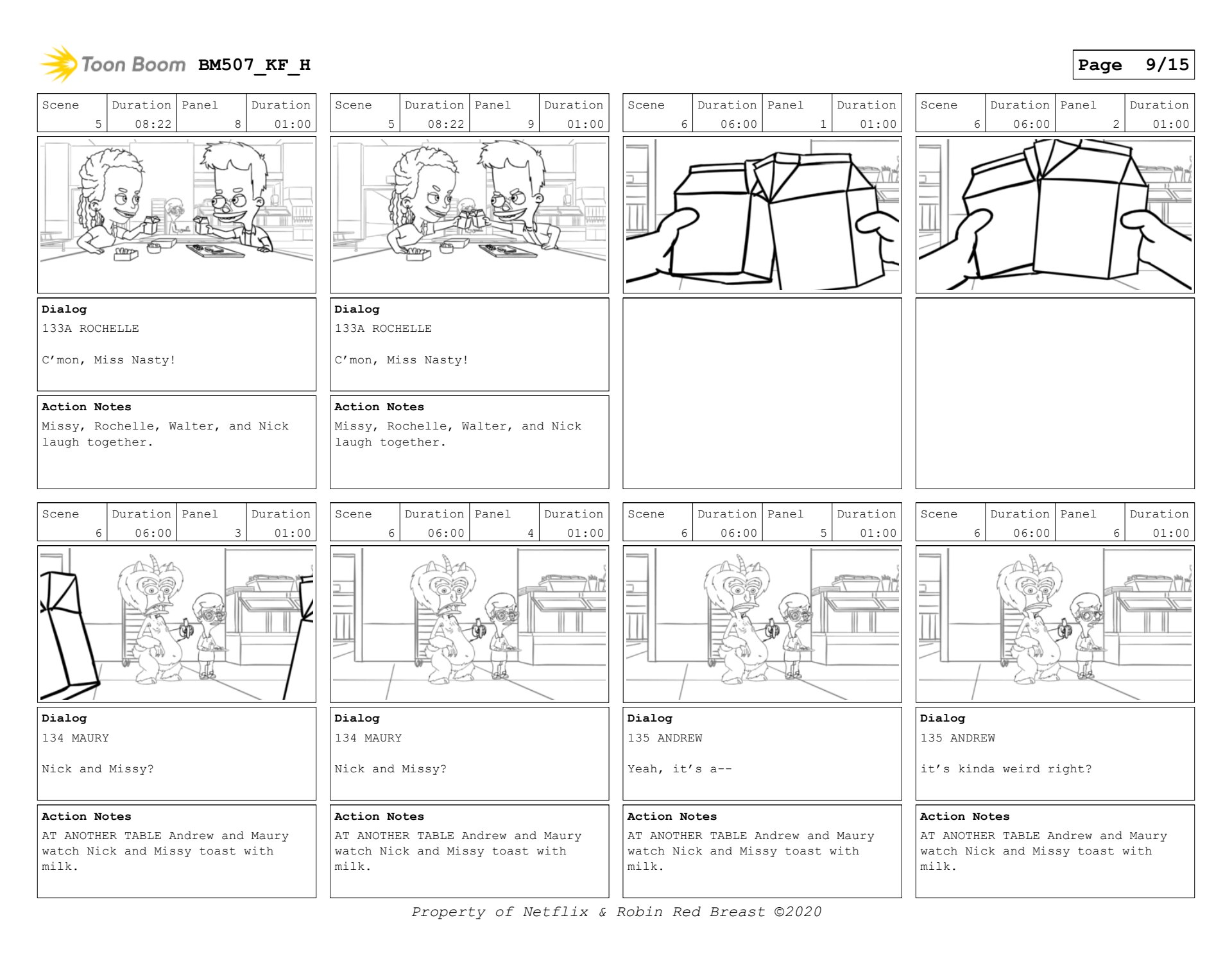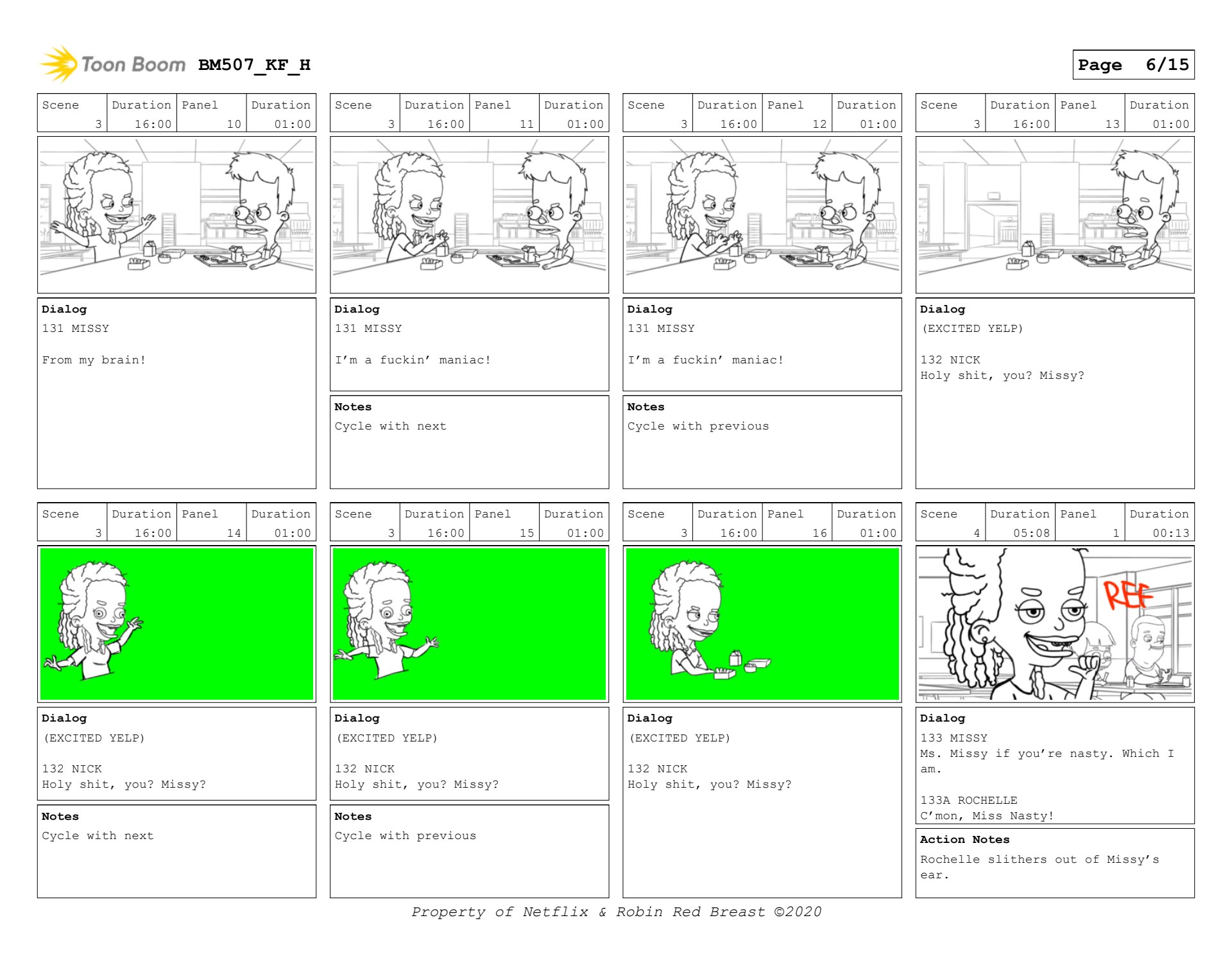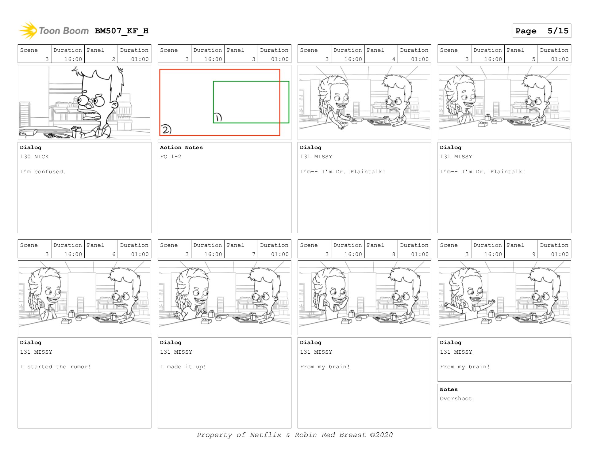 Nick and Missy scene in Big Mouth season 5. Sample of layout boards and then keyframes.