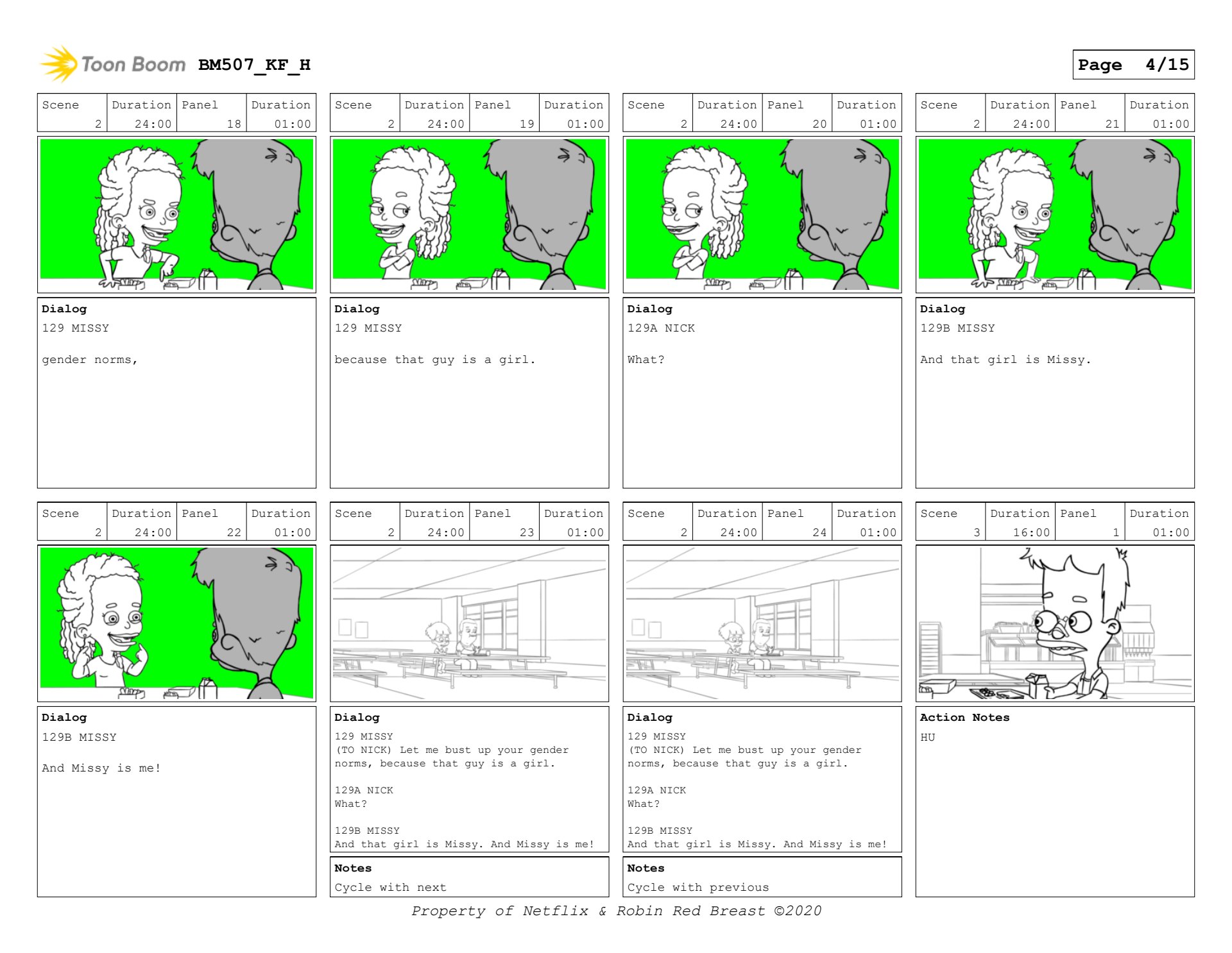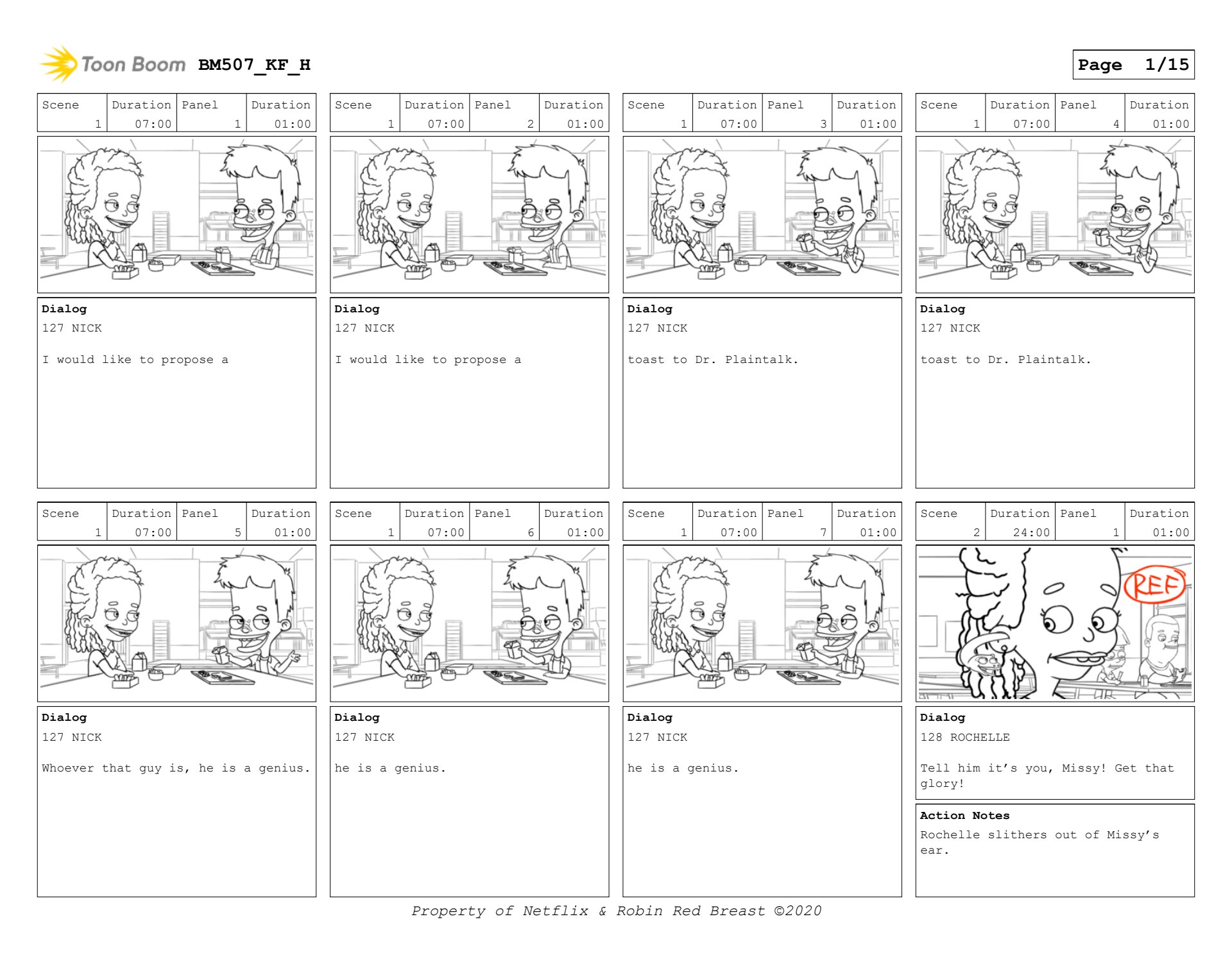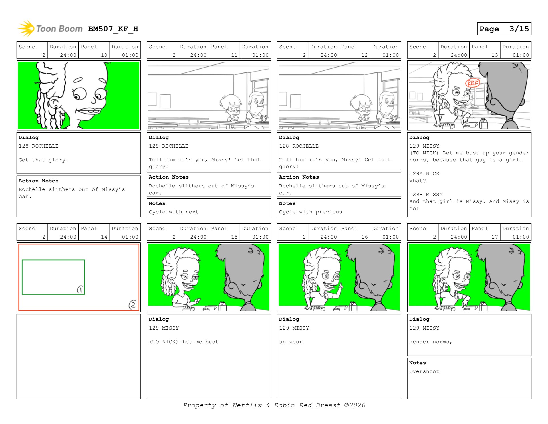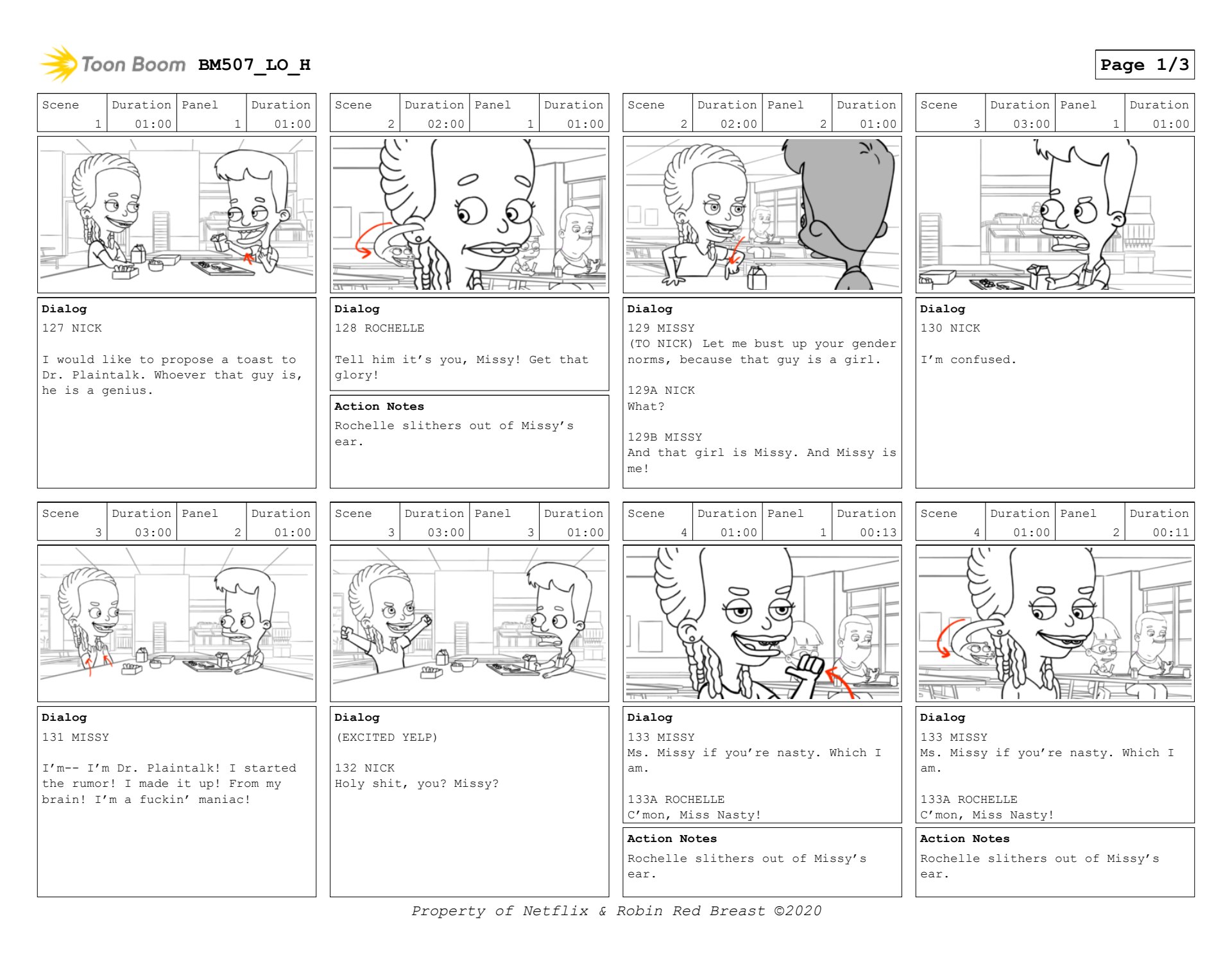 Nick and Missy scene in Big Mouth season 5. Sample of layout boards and then keyframes.