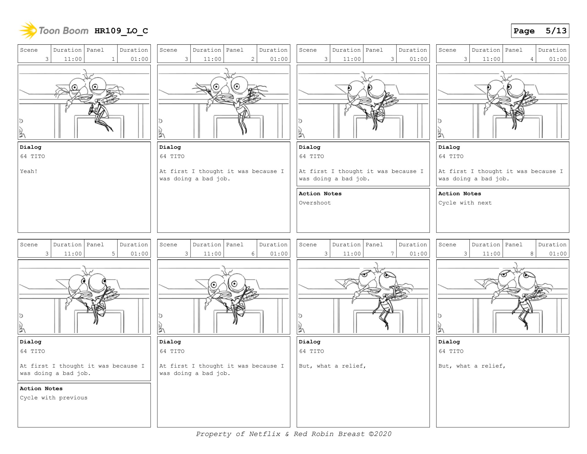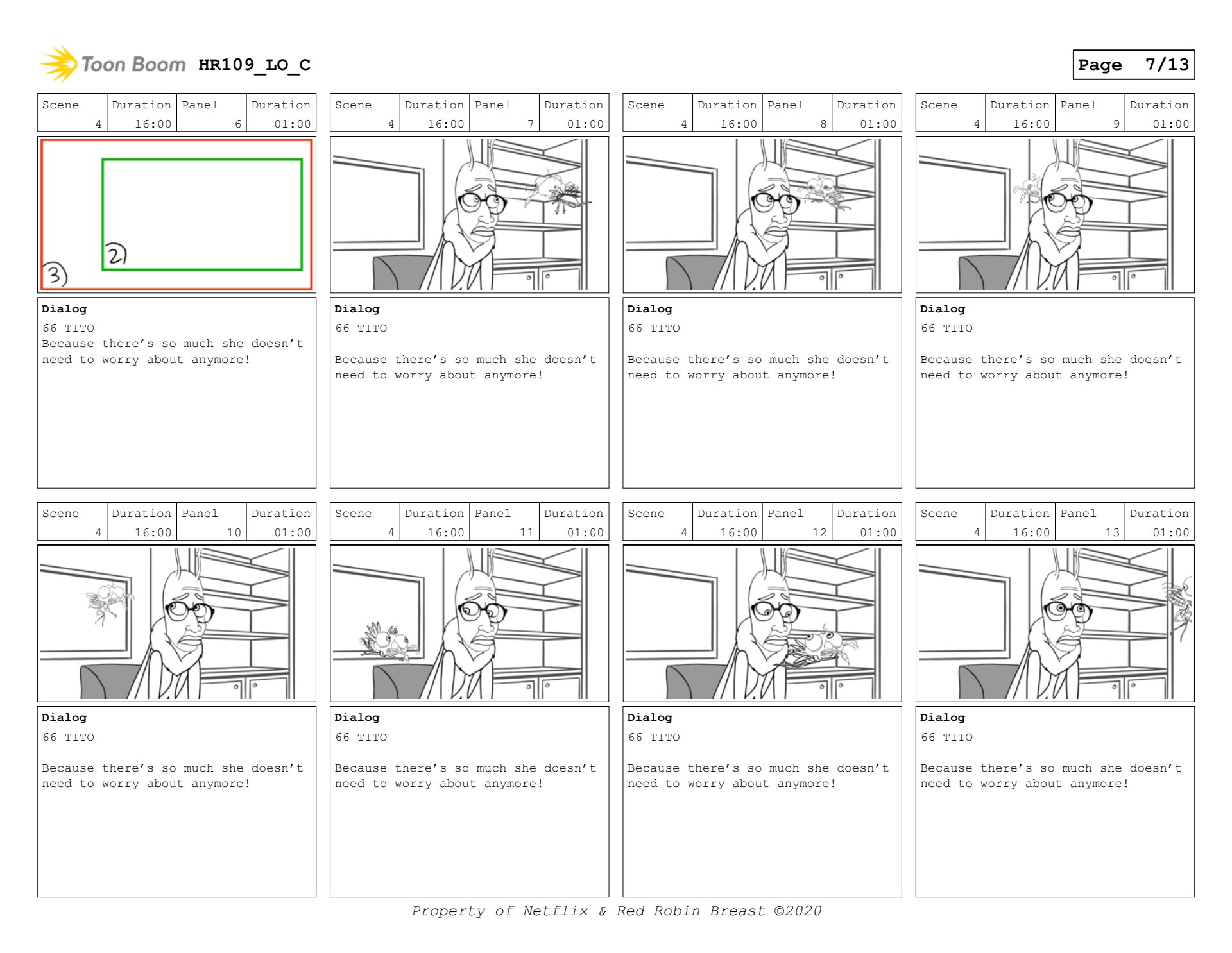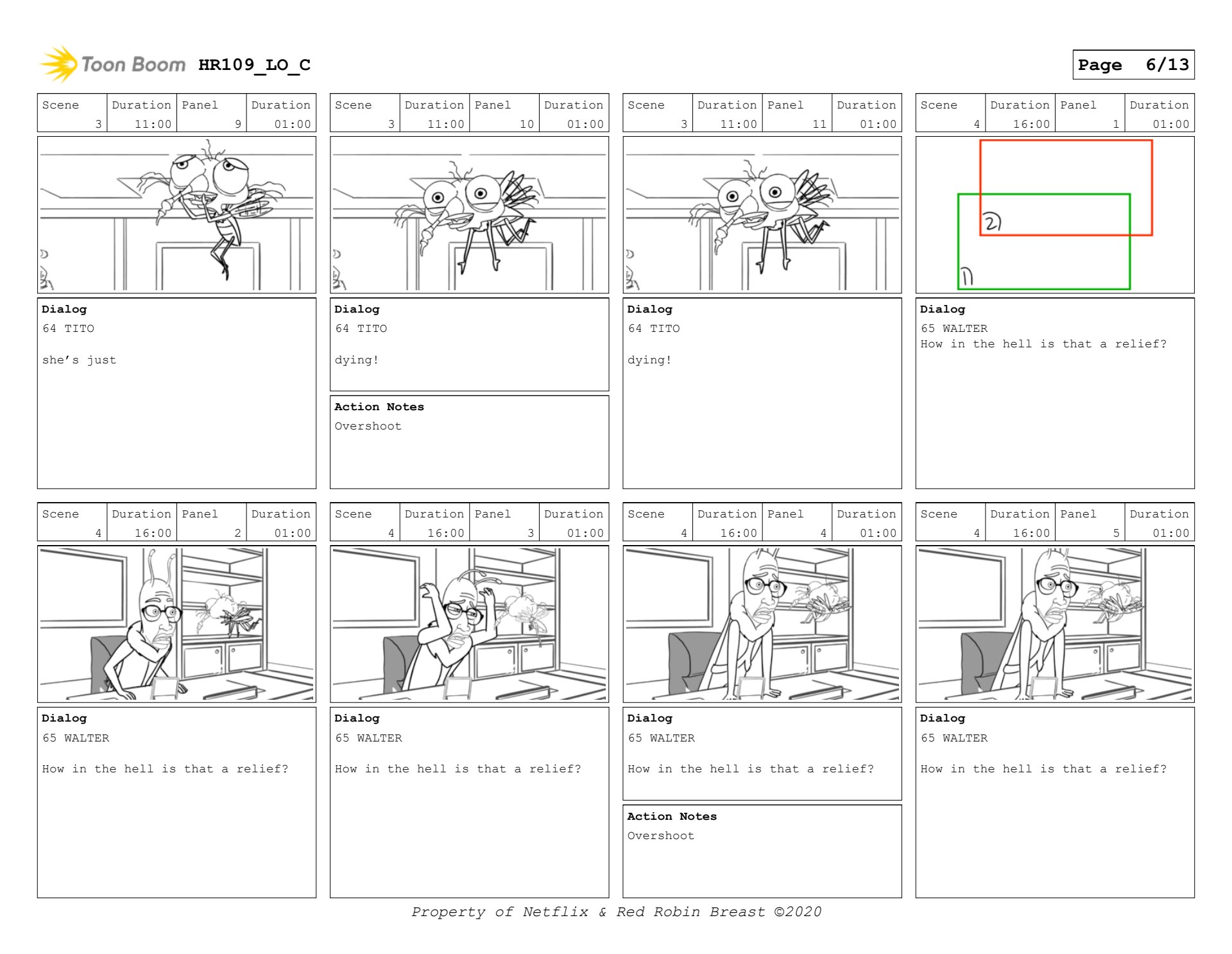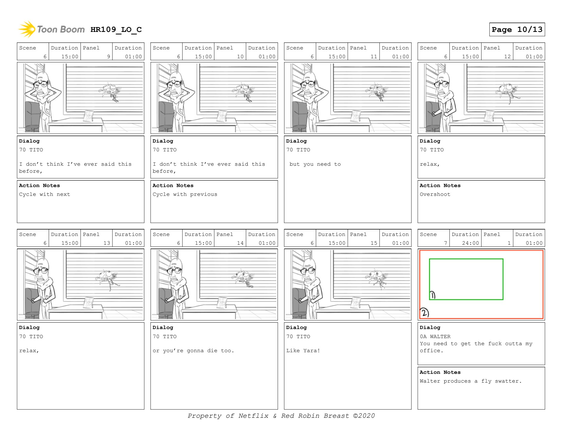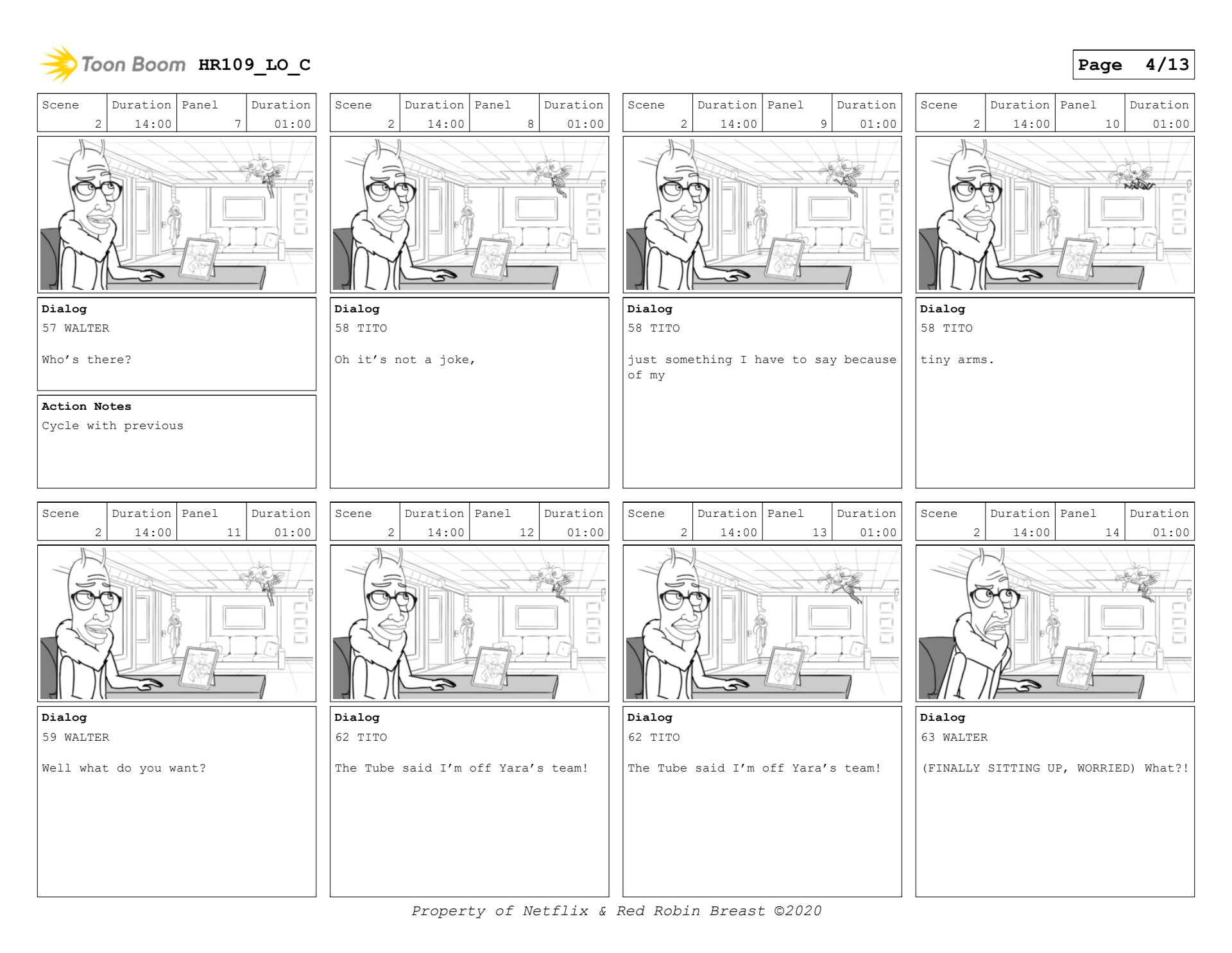 Human Resources boards for interstitial, and a scene with Walter and Tito. (keyframes only)